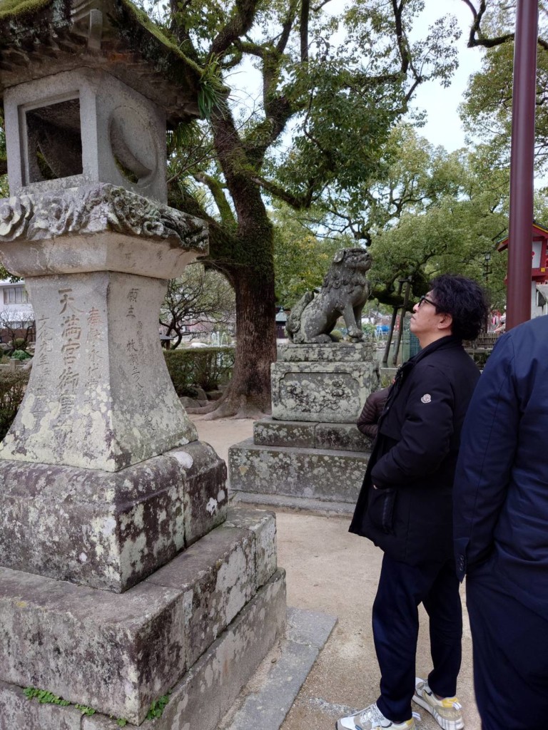 その後、太宰府天満宮へ移動、参拝させていただきました。太宰府天満宮境内地には石材部会メンバーの企業が携わった石造物も多くあり、あらためて部会メンバー、企業が地元に愛され匠の技を振るっているか垣間見る機会となりました。